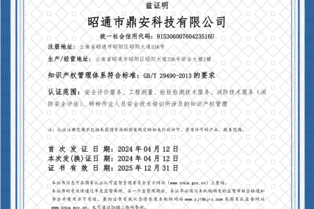 2003年11月10日,昭通市鼎安科技有限公司成立,初始主要從事第三方安全工程技術(shù)服務(wù),經(jīng)多年運(yùn)營(yíng),發(fā)展為多專(zhuān)業(yè)綜合科技平臺(tái),為社會(huì)提供多種專(zhuān)業(yè)技術(shù)服務(wù)工作。 現(xiàn)公司注冊(cè)資金為1200萬(wàn)元,公司法定代表人:毛衛(wèi)旭。公司主要業(yè)務(wù):安全評(píng)價(jià)、安全標(biāo)準(zhǔn)化評(píng)審、安全工程技術(shù)服務(wù);環(huán)境監(jiān)測(cè)、職業(yè)衛(wèi)生檢測(cè)、檢驗(yàn);法律訴訟及非訴訟服務(wù);司法鑒定、固定資產(chǎn)投資項(xiàng)目節(jié)能服務(wù);工程咨詢(xún);工程測(cè)量測(cè)繪;安全教育培訓(xùn)等。是安全生產(chǎn)服務(wù)、安全教育培訓(xùn)機(jī)構(gòu),也是環(huán)境監(jiān)測(cè)和職業(yè)衛(wèi)生服務(wù)機(jī)構(gòu),同時(shí)也是綜合的檢測(cè)檢驗(yàn)、綜合科技平臺(tái)服務(wù)機(jī)構(gòu)。多年來(lái)為公、檢、法、司、軍、警、海關(guān)、仲裁、安監(jiān)、工礦商貿(mào)企業(yè)、社會(huì)團(tuán)體及個(gè)人提供多專(zhuān)業(yè)技術(shù)服務(wù)。